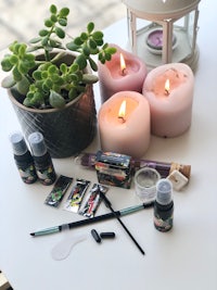 🌸We breed henna from a capsule with a mineral solution and proceed to staining.